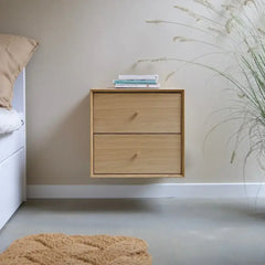 Ta montowana na ścianie szafka nocna została zaprojektowana z myślą o wszechstronności i elastyczności. Szuflada zapewnia dodatkową przestrzeń do przechowywania i utrzymuje rzeczy uporządkowane i ukryte. W sypialni służy jako praktyczne i stylowe rozwiązanie do przechowywania, podczas gdy w salonie może być używany jako elegancki stolik boczny. W przedpokoju idealnie nadaje się do przechowywania kluczy i innych drobnych przedmiotów, a w kuchni oferuje miejsce na książki kucharskie i inne drobne przedmioty.